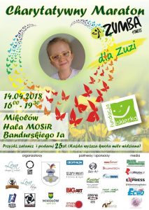 Zapraszamy na Charytatywny Maraton ZUMBA FITNESS ?dla Zuzi?, który odbędzie się 14 kwietnia br. w Hali Sportowej MOSiR, czas trwania: 16:00 – 19:30.