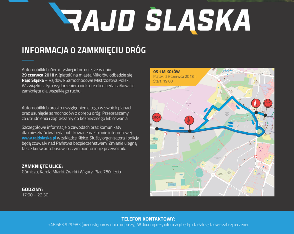 Szczegółowe informacje dotyczące rajdu znajdują się na stronie ogrnizatora www.rajdslaska.pl.